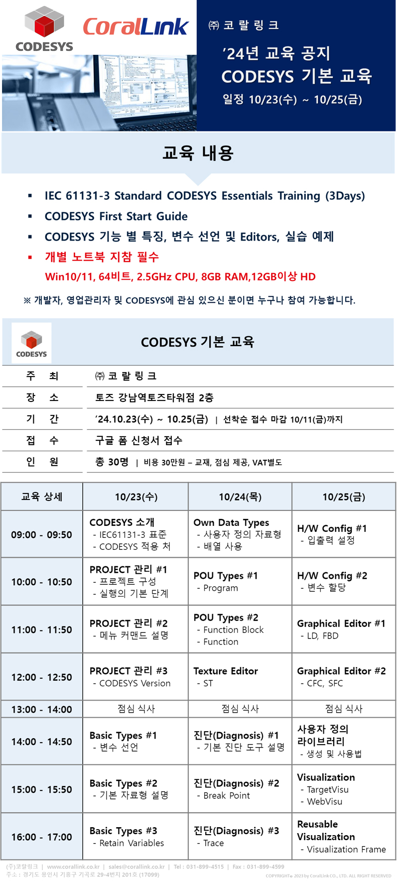 ÄÚ¶ö¸µÅ© 2024 CODESYS ±âº»±³À° ÁøÇ࠾ȳ» µå¸³´Ï´Ù.